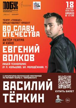 Приглашают всех жителей Кольцово посмотреть спектакль по мотивам поэмы «Василий Тёркин». Приобрести билеты можно по ссылке или через QR-код на афише.